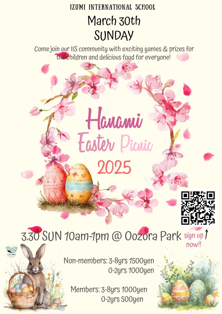 Annual family Hanami Easter Picnic! Exciting games, prizes, and food for everyone to enjoy! Come join us at Oozora Park!
